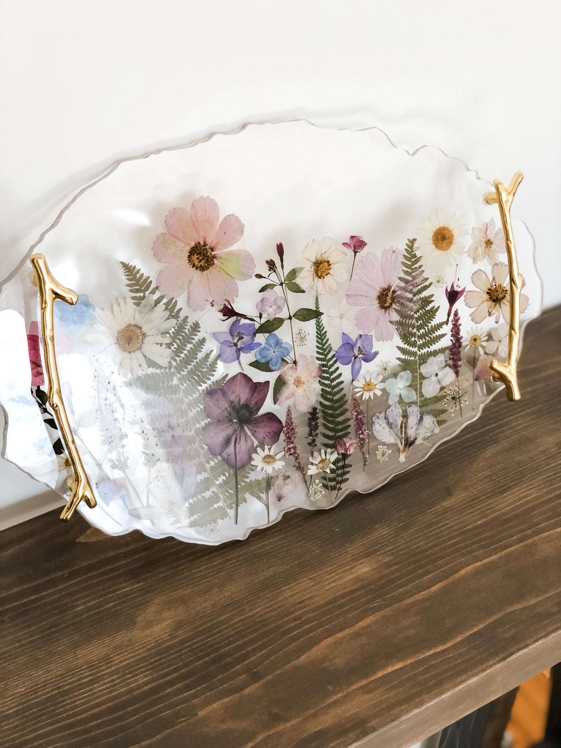 The perfect addition to your home! Bring nature into your home with this beautiful resin flower tray.